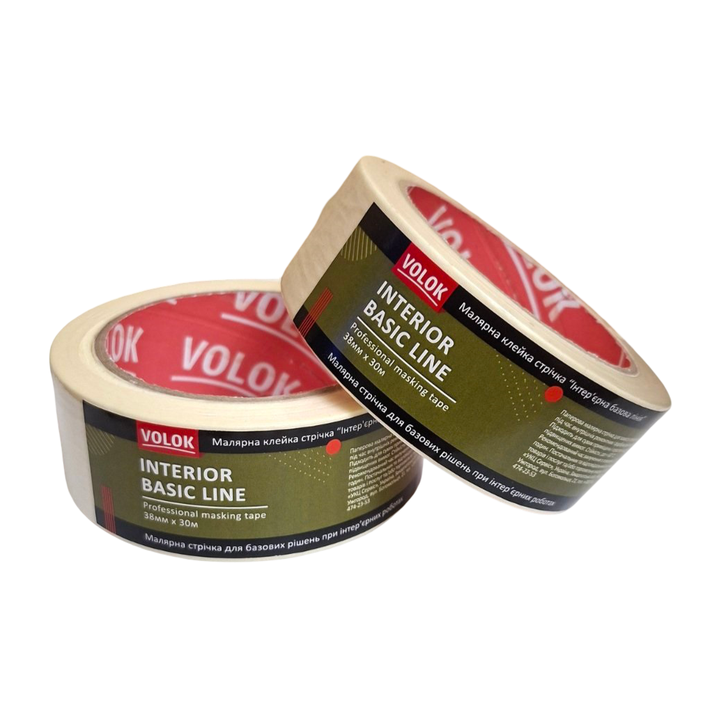 Малярна стрічка VOLOK Interior Basic Line 38 мм × 30 м — надійне рішення для базових ремонтних і фарбувальних робіт